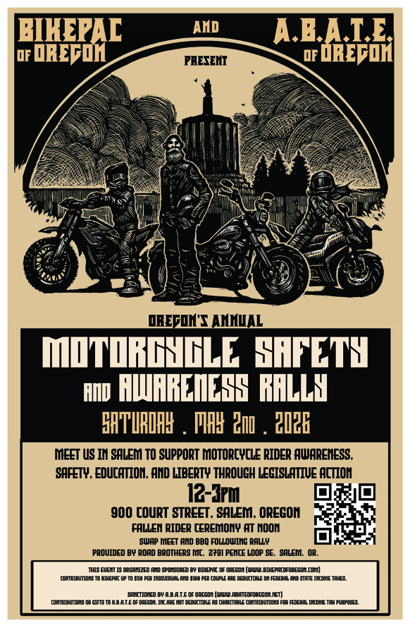 BikePAC of Oregon is looking for passionate individuals to step up and help protect the rights of motorcyclists across our state. We’re a grassroots political action committee dedicated to advocating for motorcycle safety, awareness, education, and freedom on the road, through fair and equitable legislation.